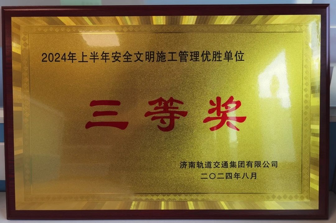 8月6日,在濟南軌道交通集團召開的2024年上半年安全生產(chǎn)大會暨第三季度安委會擴大會議上,由海河公司監(jiān)理的6號線機電裝修監(jiān)理三標項目、7號線監(jiān)理二標項目、新東站安置三區(qū)二期配套小學項目及華山北AX-2幼兒園項目分別榮獲“2024年上半年安全文明施工管理優(yōu)勝單位”一等獎、二等獎、三等獎。
